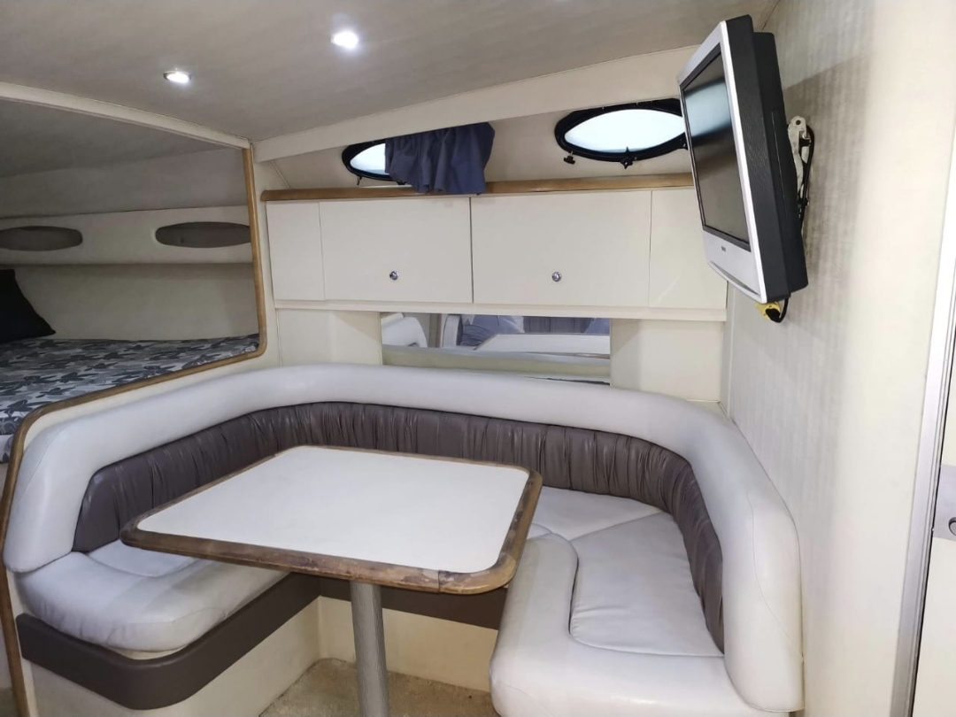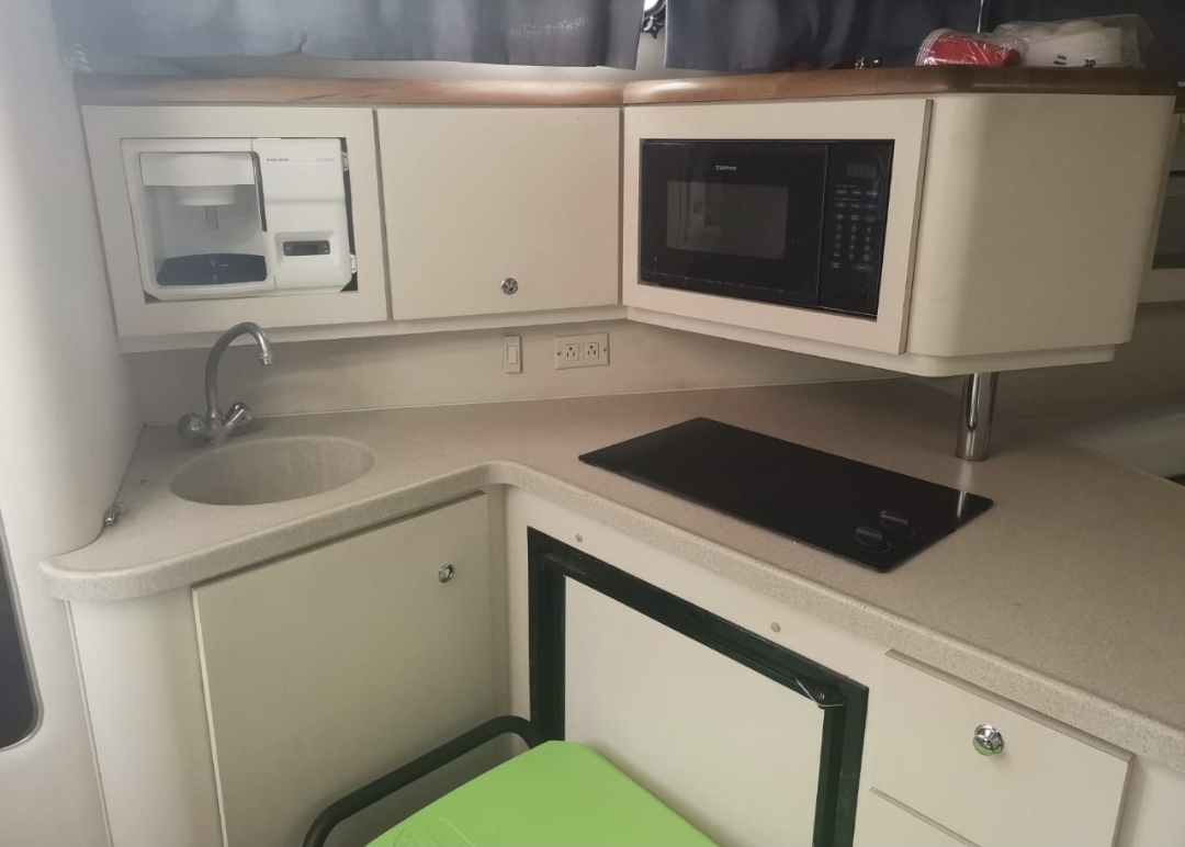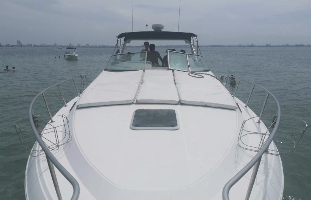 El yate perfecto para fiestas, cumpleaños y experiencias VIP en el mar. 46 pies de puro lujo con camarote climatizado, cocina completa, 2 salas, recámara, 2 baños y una increíble área social exterior con asoleadero y sistema Bluetooth.